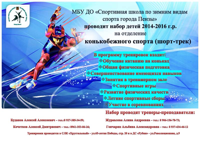 МБУ ДО «Спортивная школа по зимним видам спорта города Пензы проводит набор детей на отделение конькобежного спорта(шорт-трек)