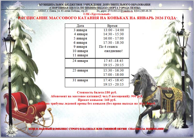 Расписание массового катания на коньках январь 2026 года