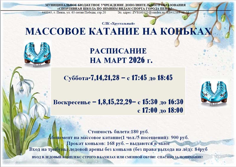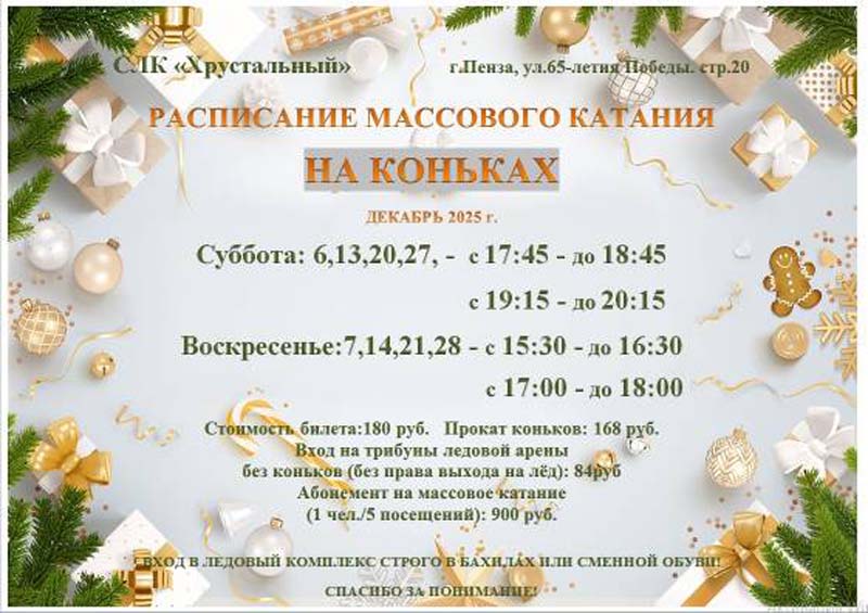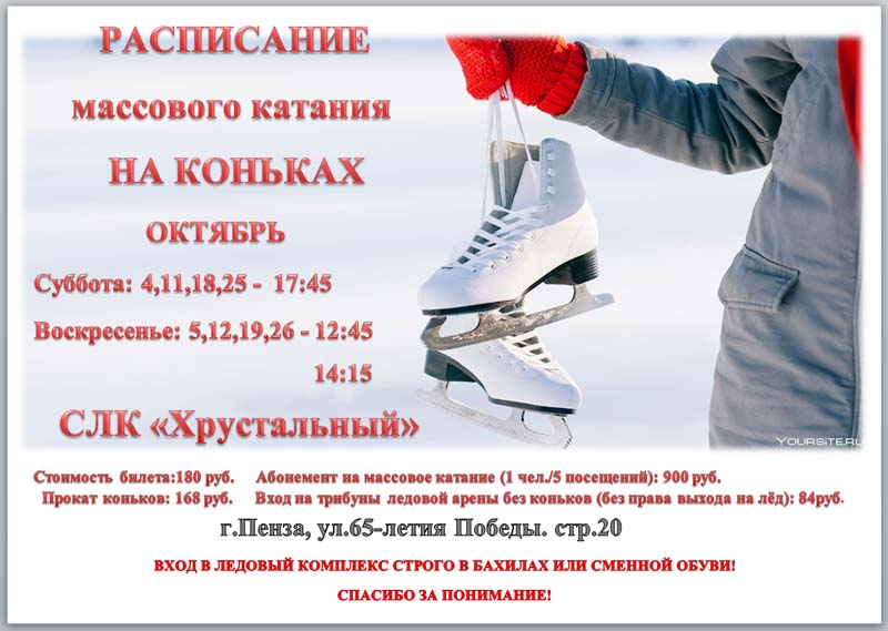 Правила поведения посетителей на сеансах массового катания ледового спортивного комплекса «Хрустальный».